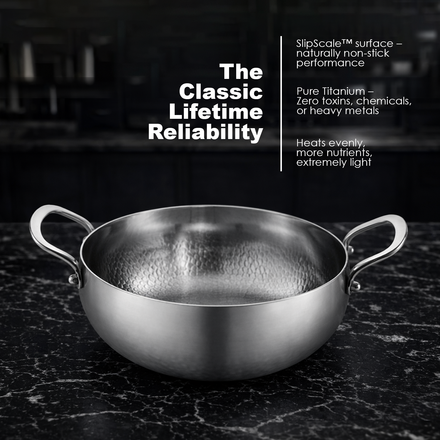 Expertly crafted from pure, food-safe titanium, offering a healthy and worry-free cooking experience free from harmful coatings or chemicals. Designed for strength and longevity, it resists corrosion, warping, and wear while delivering reliable performance for everyday and high-heat cooking alike.