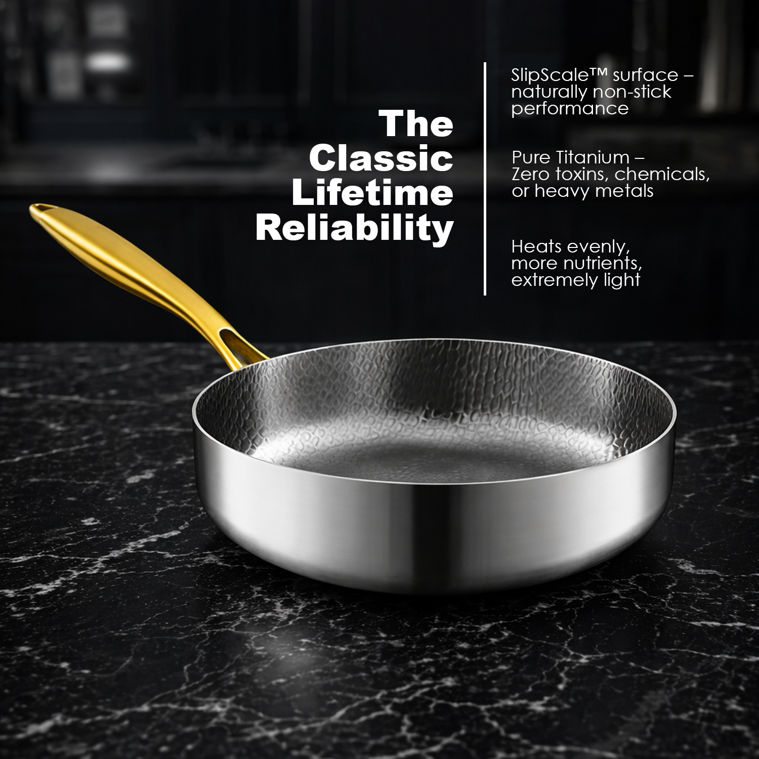 Expertly crafted from pure, food-safe titanium, offering a healthy and worry-free cooking experience free from harmful coatings or chemicals. Designed for strength and longevity, it resists corrosion, warping, and wear while delivering reliable performance for everyday and high-heat cooking alike.